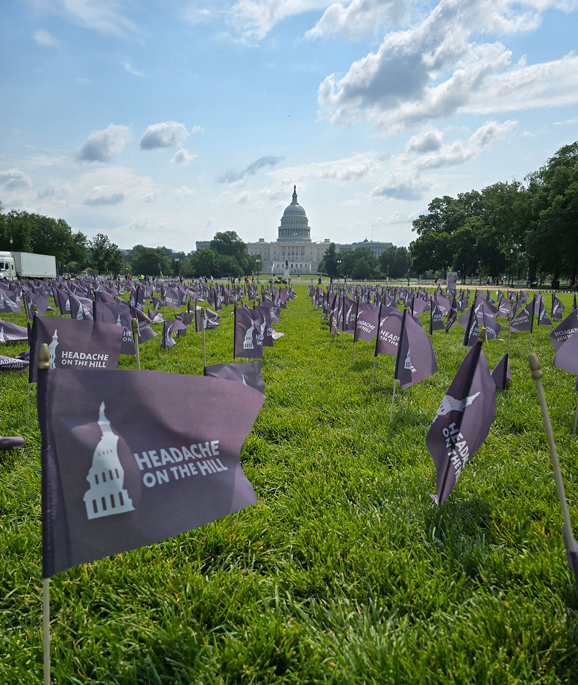 • Flags for Headache National Mall Installation – Led by the Alliance for Headache Disorders Advocacy (AHDA) and the Headache Alliance, we sponsored the first National Mall Installation project, to raise awareness for migraine and headache disorders. This installation featured thousands of purple flags representing individuals affected by these conditions and American flags honoring military families and veterans who suffer from headache disorders. The installation was a call to action for a national plan to address the crisis of migraine and headache disorders in the United States with an introduction of the HEADACHE Act. To learn more, visit FlagsForHeadache.org.